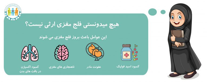 اما حال باید به پاسخگویی به سوالی که در ابتدای این مقاله اشاره شد بپردازیم ، با قطعیت کامل میتوان گفت که فلج مغزی یک بیماری ارثی نیست بلکه تاثیر پذیری زیادی دارد نسبت به تغذیه مادر و همچنیین زایمان گاها کمبود اکسیژن در زمان تولد و یا کمبود اسید فولیک در مادر باعث این بیماری می باشد در یک اینفوگرافی سعی کردیم که انواع موارد تاثیر گذار بر ان را برای شما شرح دهیم.
